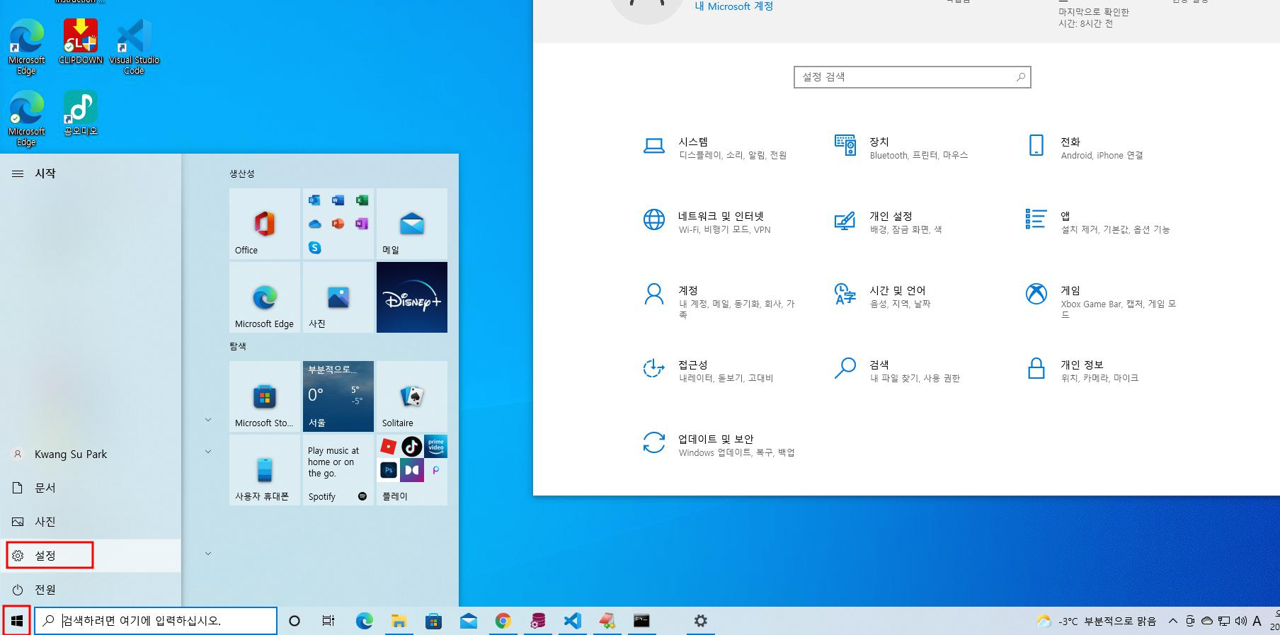 1) 원도우키 선택 후 설정 선택