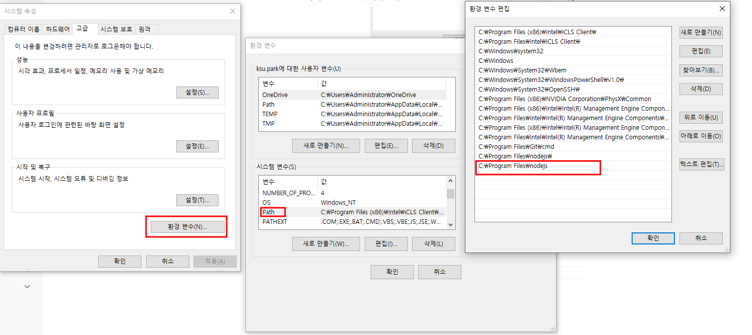 Path에 C:\Program Files\nodejs 추가